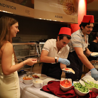 The Evening kicked off with a special dinner in the canteen, where Committee members took on the roles of cooks and servers. The menu featured everything from signature kebabs and fish and chips to homemade desserts and cookies. Students added to the celebratory spirit by dressing up beautifully for the event.