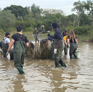 After a quick ice-breaking session, the day began with boots on the ground—or rather, waders in the water . The group embarked on a hands-on field mission within a gei wai, working together to remove invasive sedges from the mangrove area to aid the habitat's delicate balance. This practical fieldwork provided a tangible connection to the ecosystem they are learning to protect.